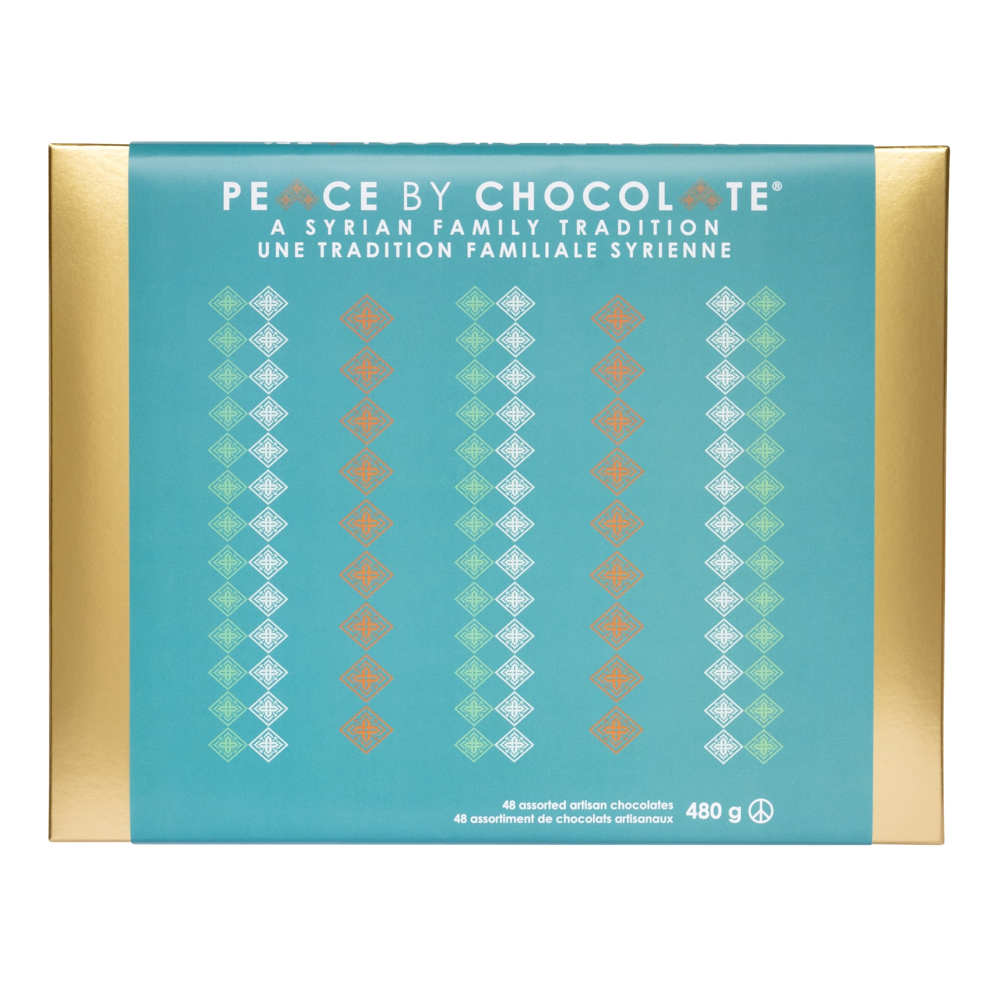 - Creamy milk chocolate and caramel squares with the Peace by Chocolate icons