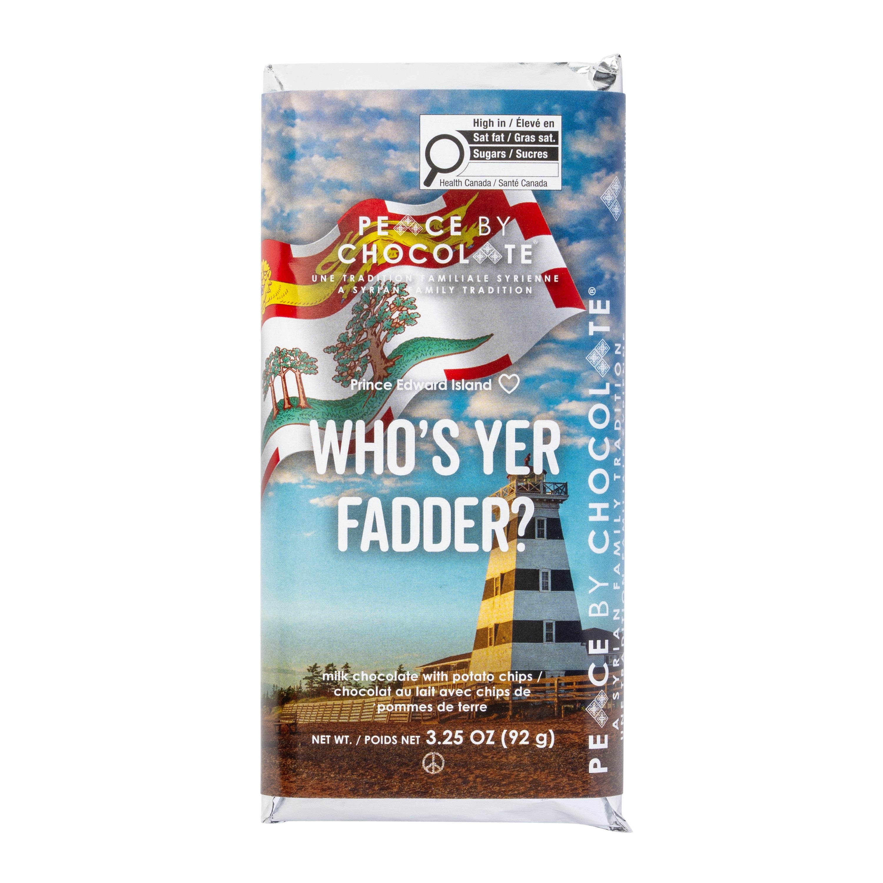 Ingredients: Milk chocolate (sugar, whole milk powder, cocoa butter, cocoa mass, soy lecithin, natural vanilla flavour), Russet potatoes, Canola oil, Sea salt.